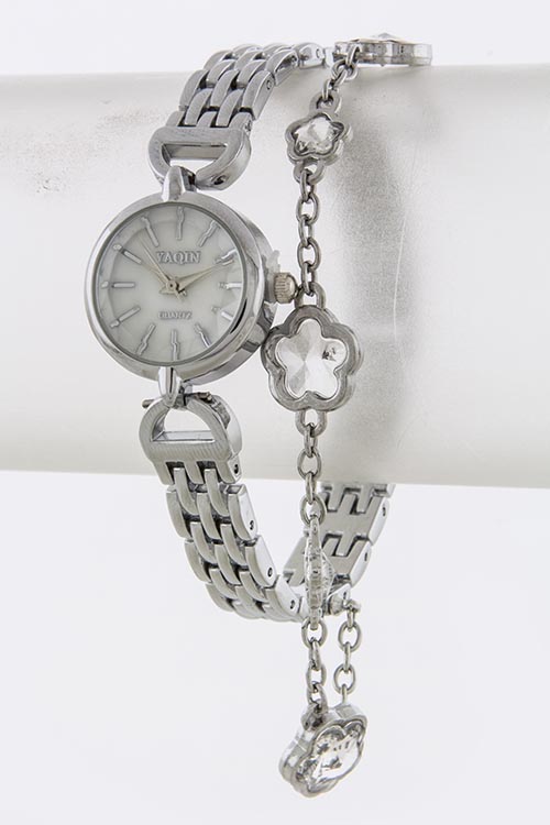 FLEUR DE LIS CROWN CHARM BRACELET WATCH